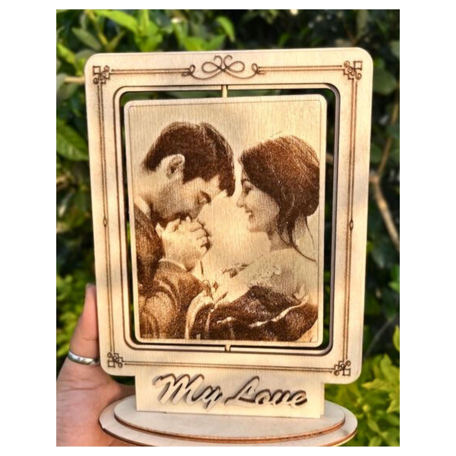 •Custom Laser Engraving: Add a personal touch with finely detailed photos and text, precision-etched for a timeless look. •Versatile Display Options: Comes with both a sturdy stand and a hangin..